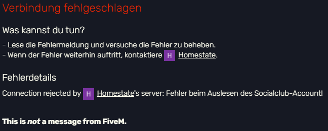 “Connection rejected by server: Error while Reading the socialclub-account!”