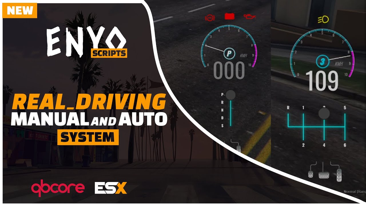 Introducing Realistic Driving & Gear System, the ultimate way to experience realistic driving in your FiveM server! This system brings true-to-life transmissions, and a dynamic speedometer that adapts to your ride. Get behind the wheel and feel the difference!