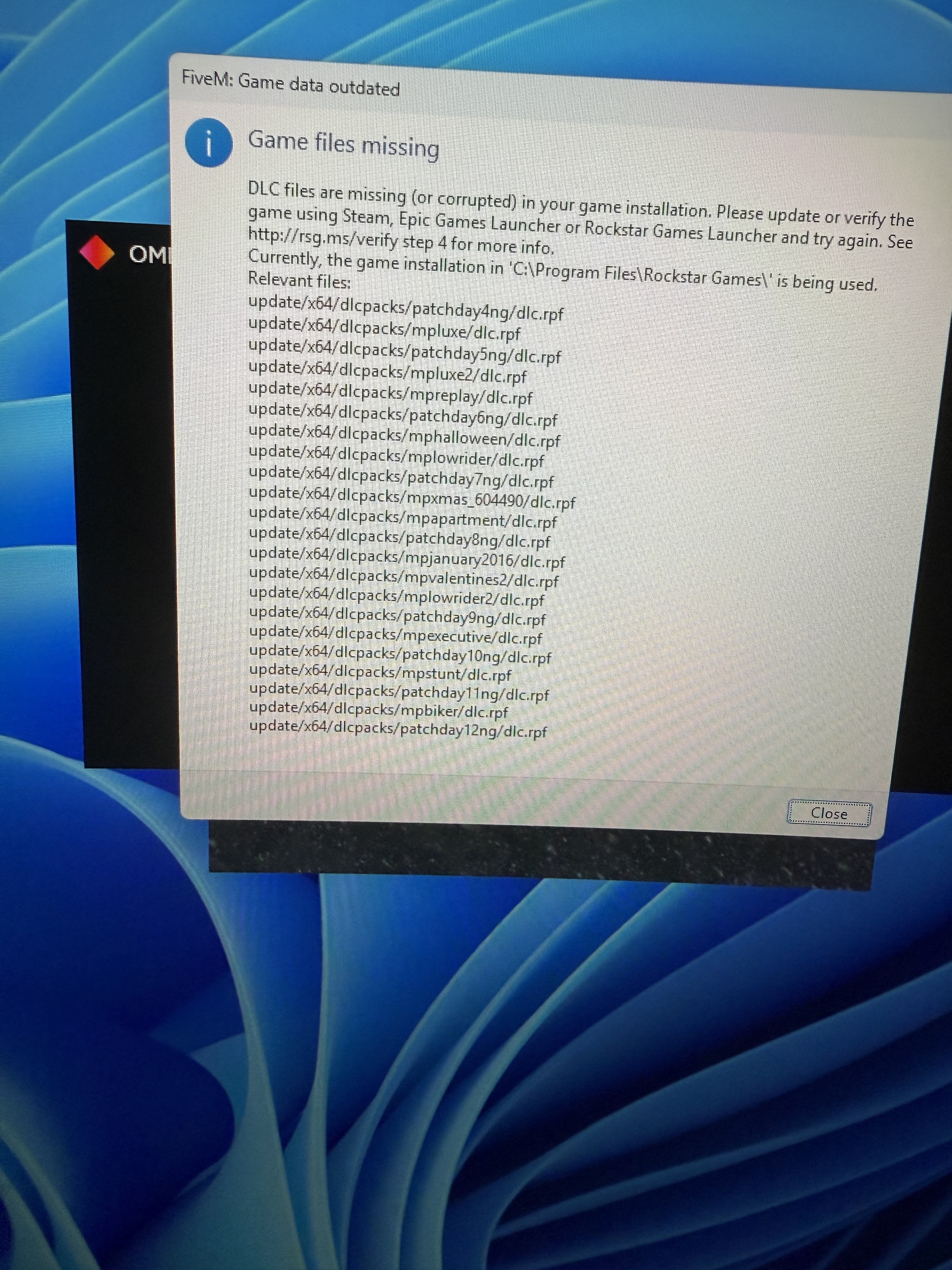 The most common cause is that your antivirus software is removing the files, make sure to exclude both GTAV and FiveM directories from your AV software, then verify files again and try loading GTAV itself (without FiveM) at least once to see if everything is present. Best load into an Online session.