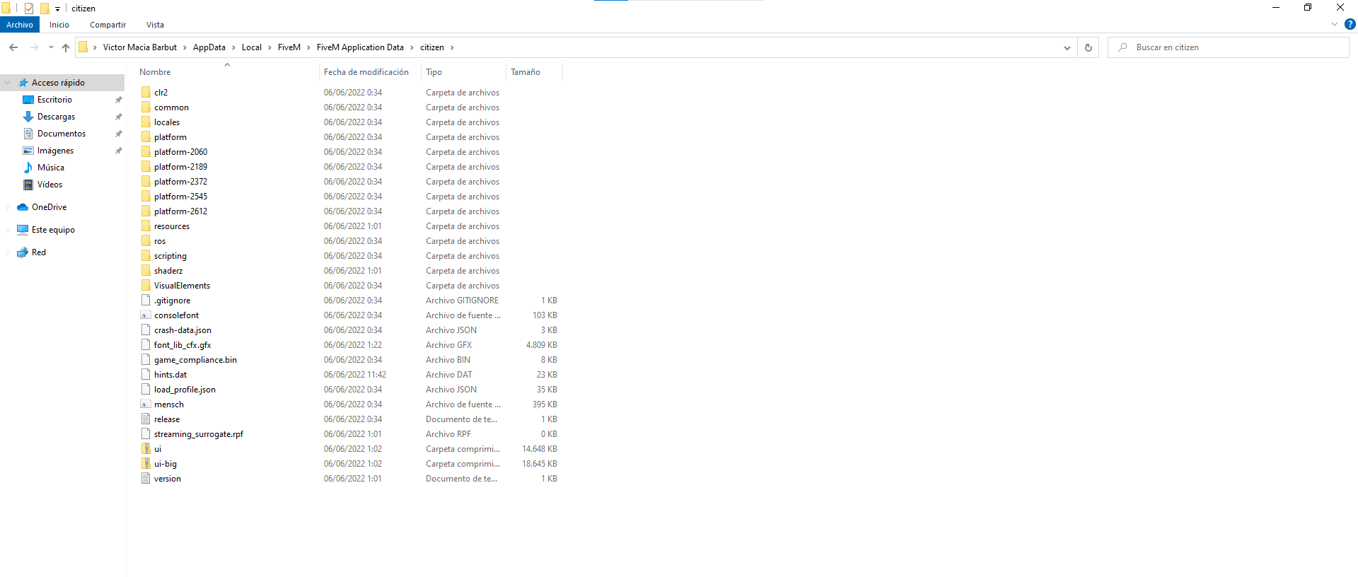 FiveM client folder screenshot: