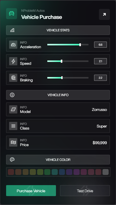 Optimized for roleplay-focused servers, Dealership Creator delivers unmatched flexibility, performance, and immersion for your city’s automotive economy.