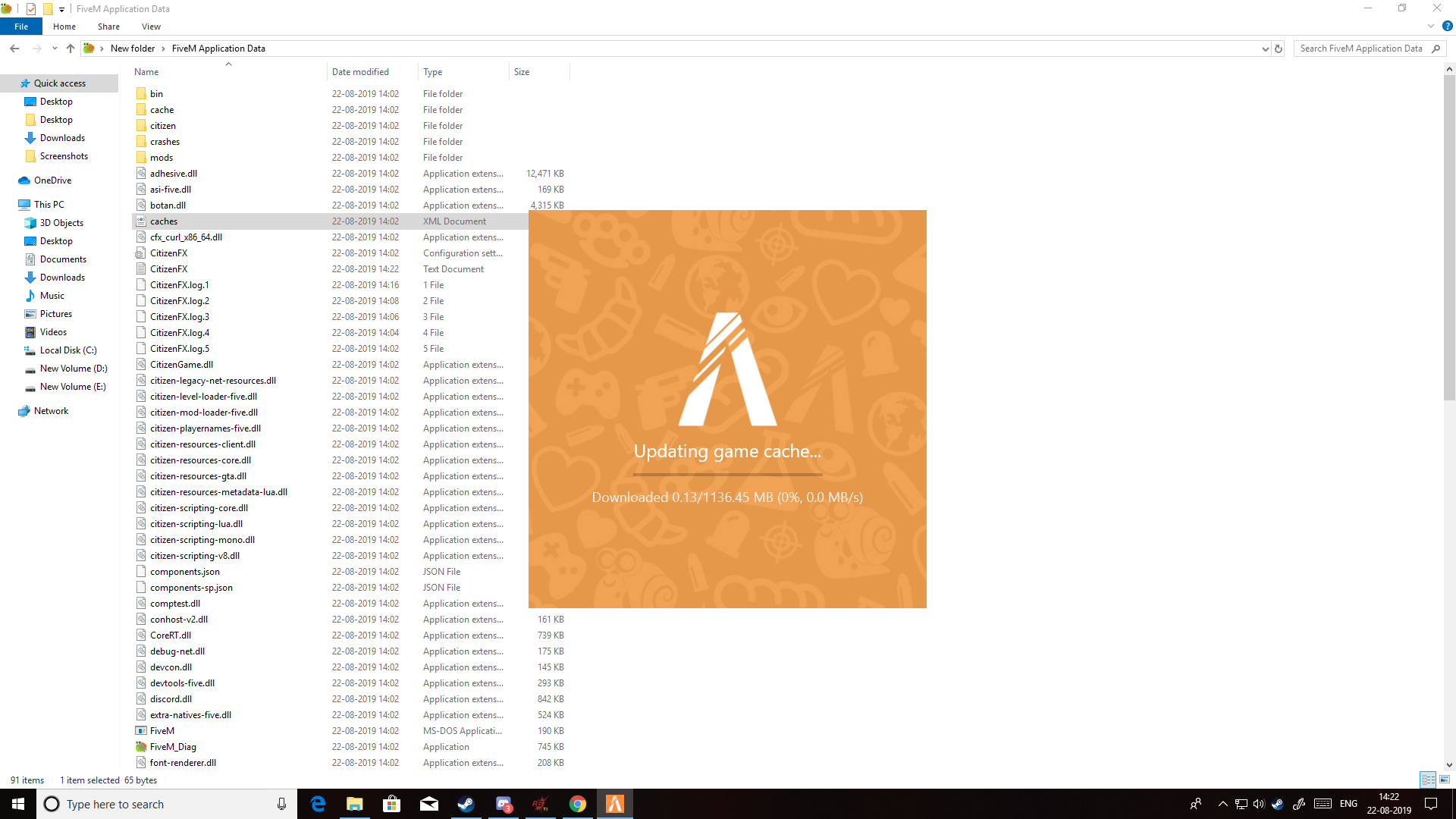 GTA V version?(Latest) Up to date?(Yes) Legit or Pirate copy?(Legit Bought From Steam) Steam/CD/Social Club?(Steam) Windows version?(Windows 10 Pro) Did you try to delete caches.xml and try again?(Yes) Error screenshot (if any) System specifications(Ryzen 5 2600,RTX 2060,16 GB RAM,1TB HDD,240GB SSD) What did you do to get this issue?(FiveM Update is stuck trying from past 1 week still same problem tried reinstalling firewall is off and i dont have antivirus in my PC) What server did you get this issue on? CitizenFX.log file .dmp files/report IDs
