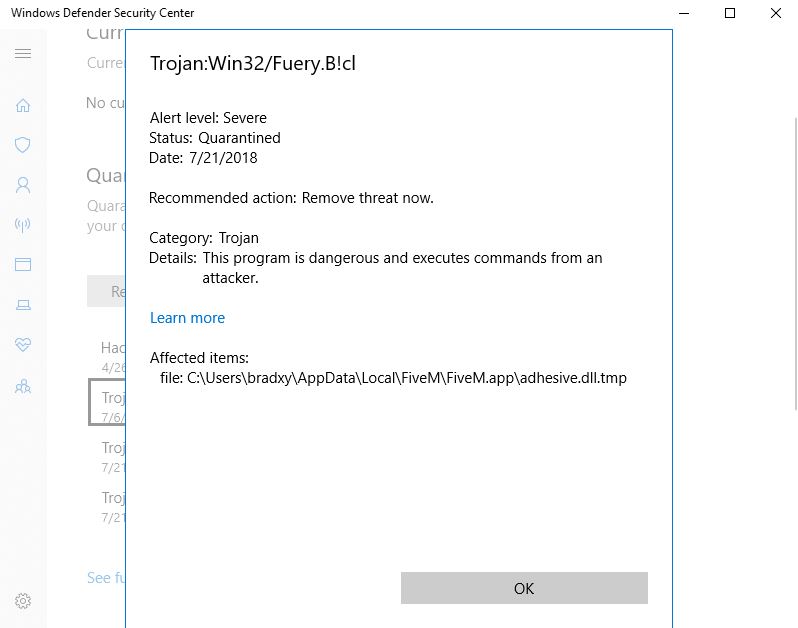 … why would it be? adhesive.dll is protected using VMProtect, and Windows Defender (primarily) is notorious for assuming anything using VMP is a virus.