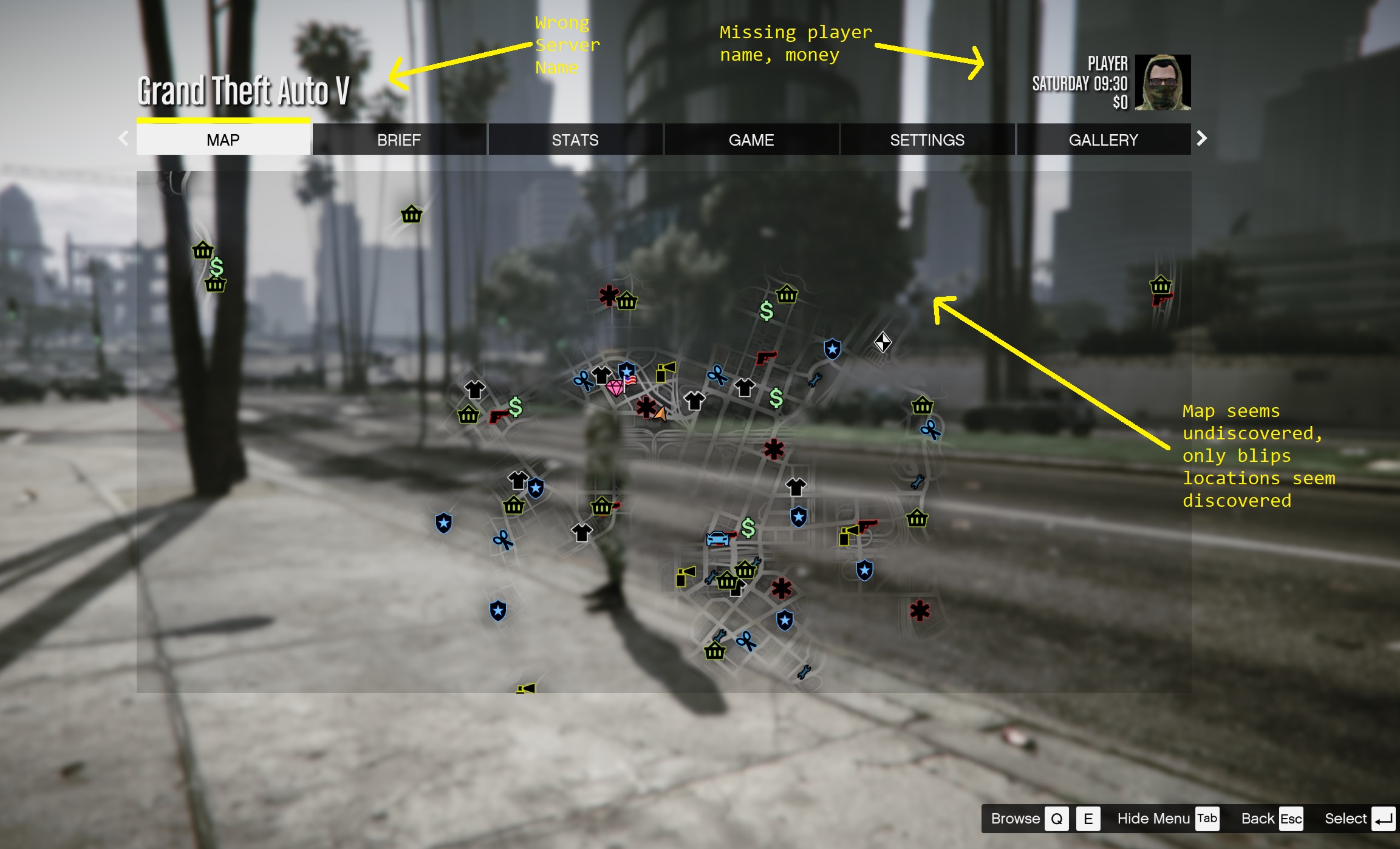 Long story short, I have a resource which updates some of the Pause Menu text entries (Game Name, Player Name, Player Money, Player Bank). This is how the pause menu usually looks on the server: