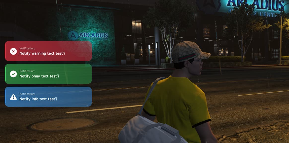 It is a notification system that you can use to give warnings in your scripts. Our script, which stands out with its modern design, also has a notification sound that can be turned on or off with a command.