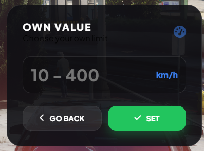 - Clean NUI menu with preset speed cards and a custom speed input.