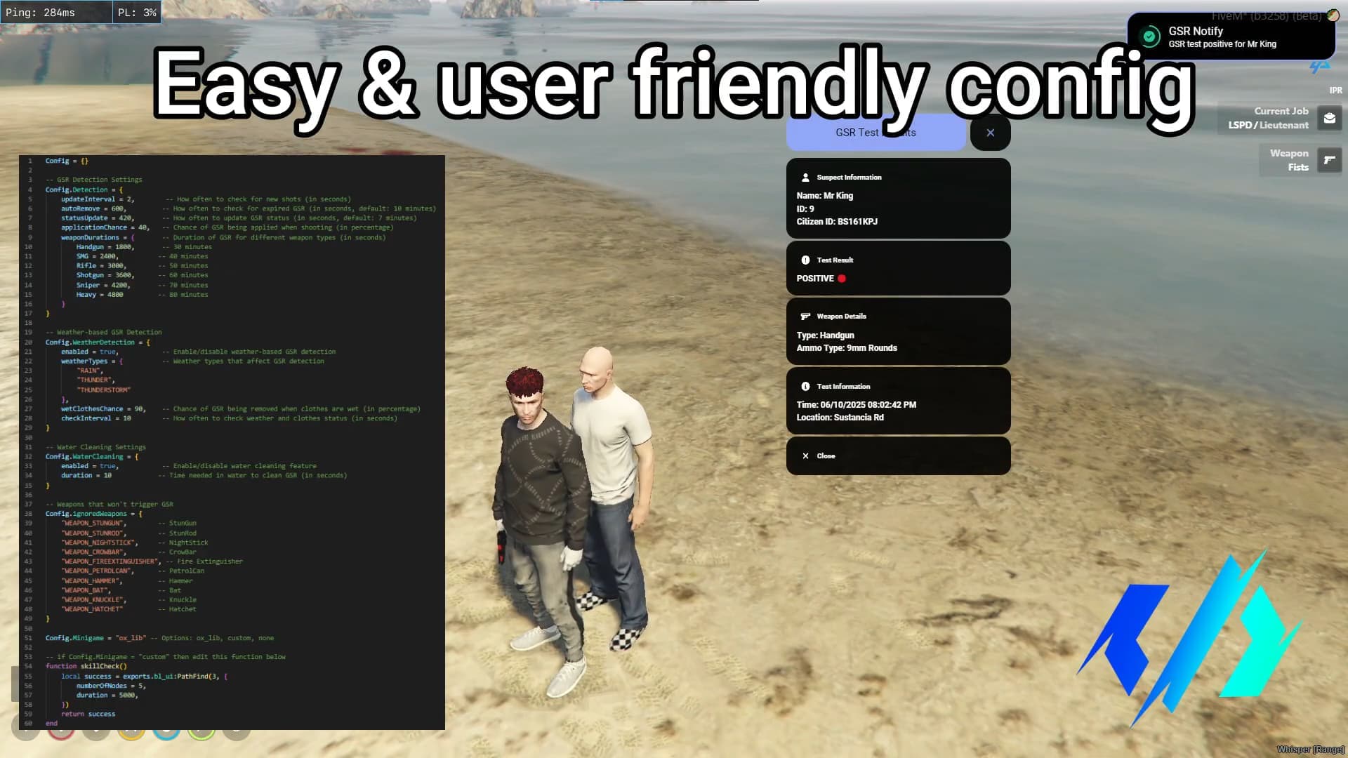 A comprehensive Gun Shot Residue detection system for FiveM servers that simulates realistic GSR mechanics, including weather effects, cleaning methods, and weapon-specific durations.