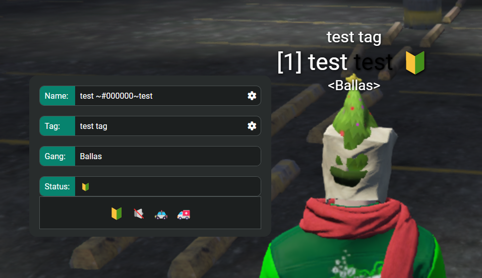 - Display name, tag, status, and gang