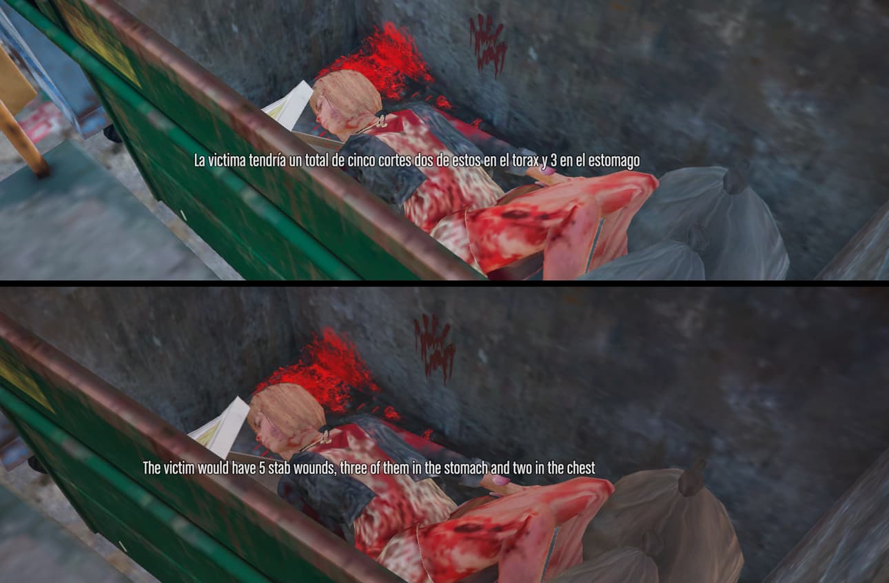 Historia del crimen: Dos consumidores se encontraban en la caseta de un callejón drogándose y bebiendo, estos se pelean y uno de ellos rompe una botella para apuñalar a la victima, tirándola tras esto a un contenedor de basura.