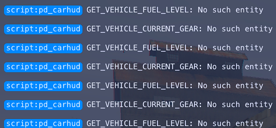Whenever a client is out of their vehicle the F8 console (client console) starts to get flooded with an error relating to not being able to detect the current vehicle gear or fuel level. I have tried a few things to fix it, but none of it seems to work for me. If anyone has any ideas to fix it that would be great!