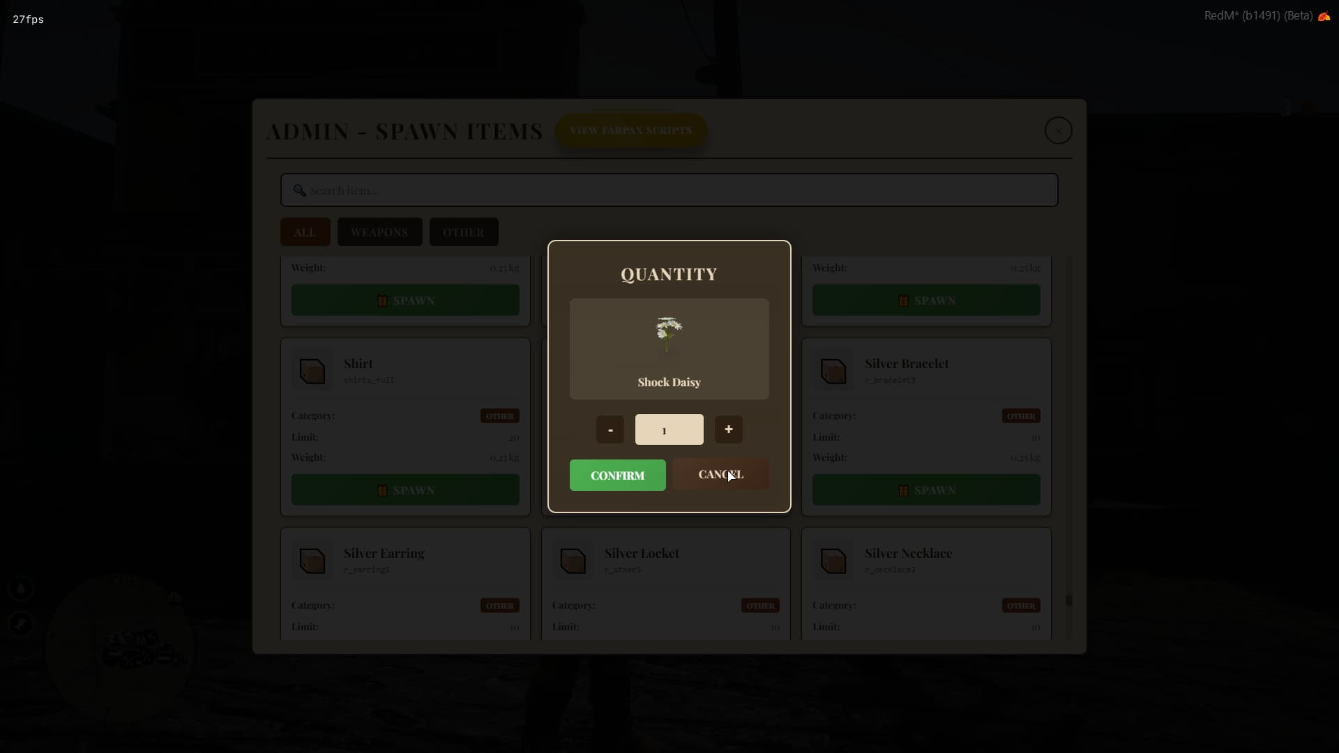 Farpax Spawn Items is a free and intuitive item spawn system designed for RedM servers using VORP Core.