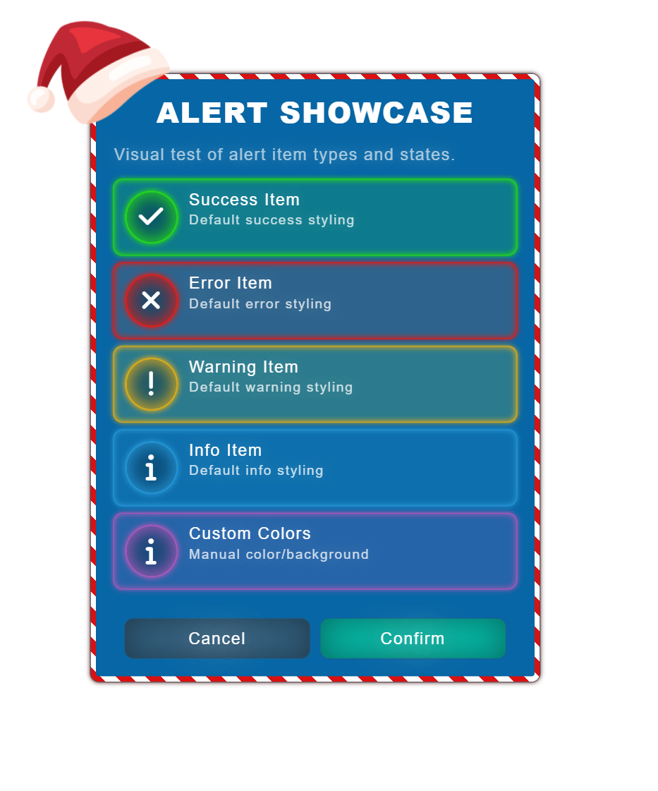Includes seasonal themes (currently Christmas)