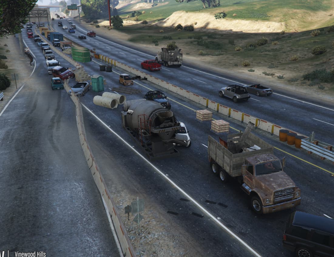 Suddenly, a massive construction site blocks your path on the highway! :octagonal_sign: