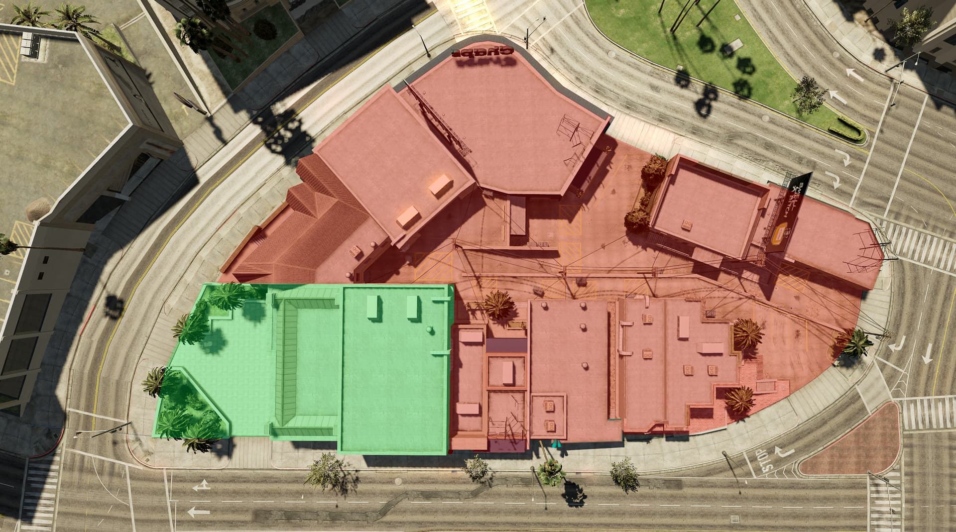 ** The photo with green and red highlights show the area these map files will affect. If you have any other MLO, Map or ymap in this area then the collisions will collide**