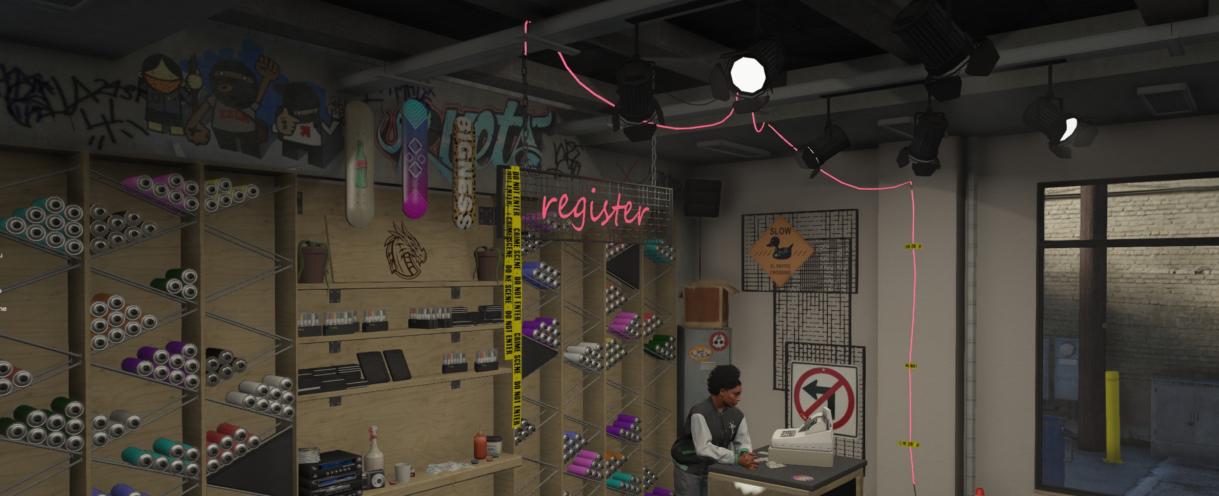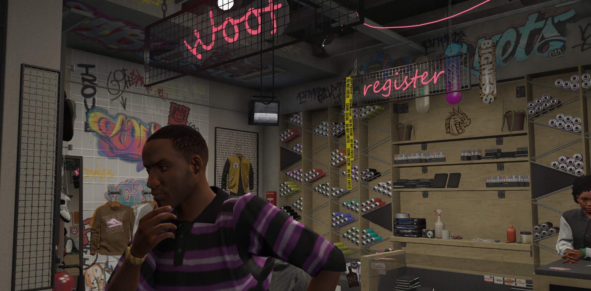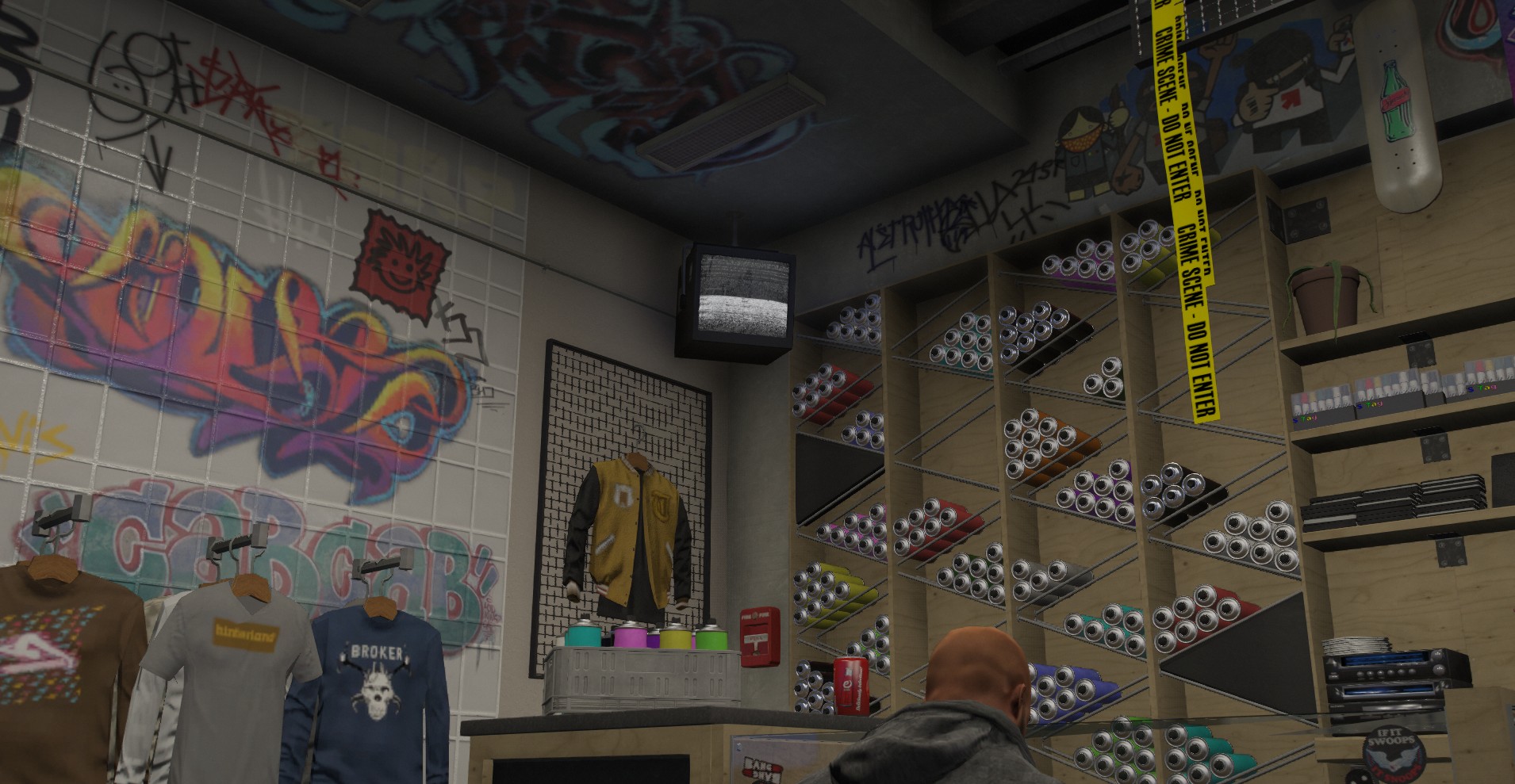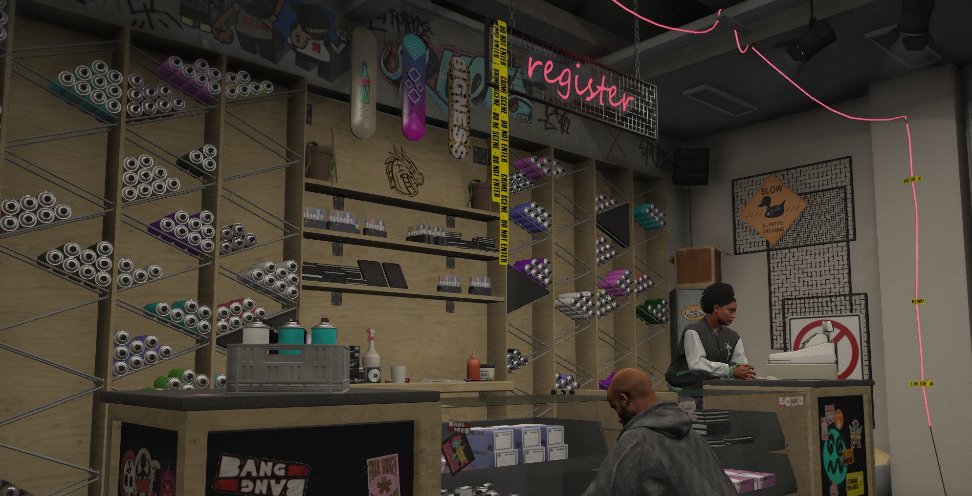 A compact, urban Graffiti store with a raw, street-inspired look.