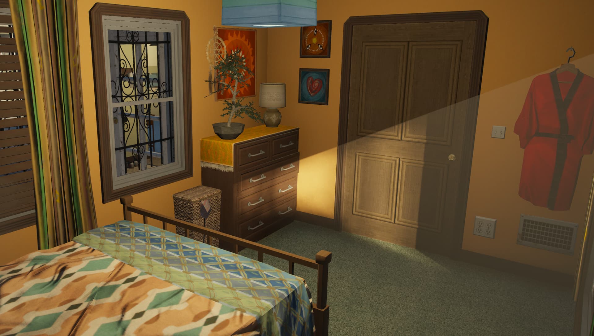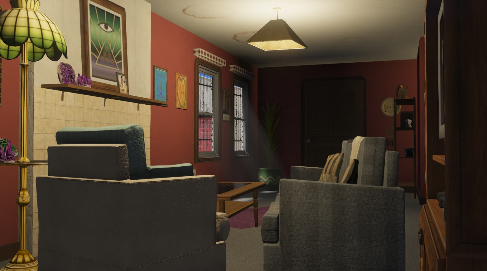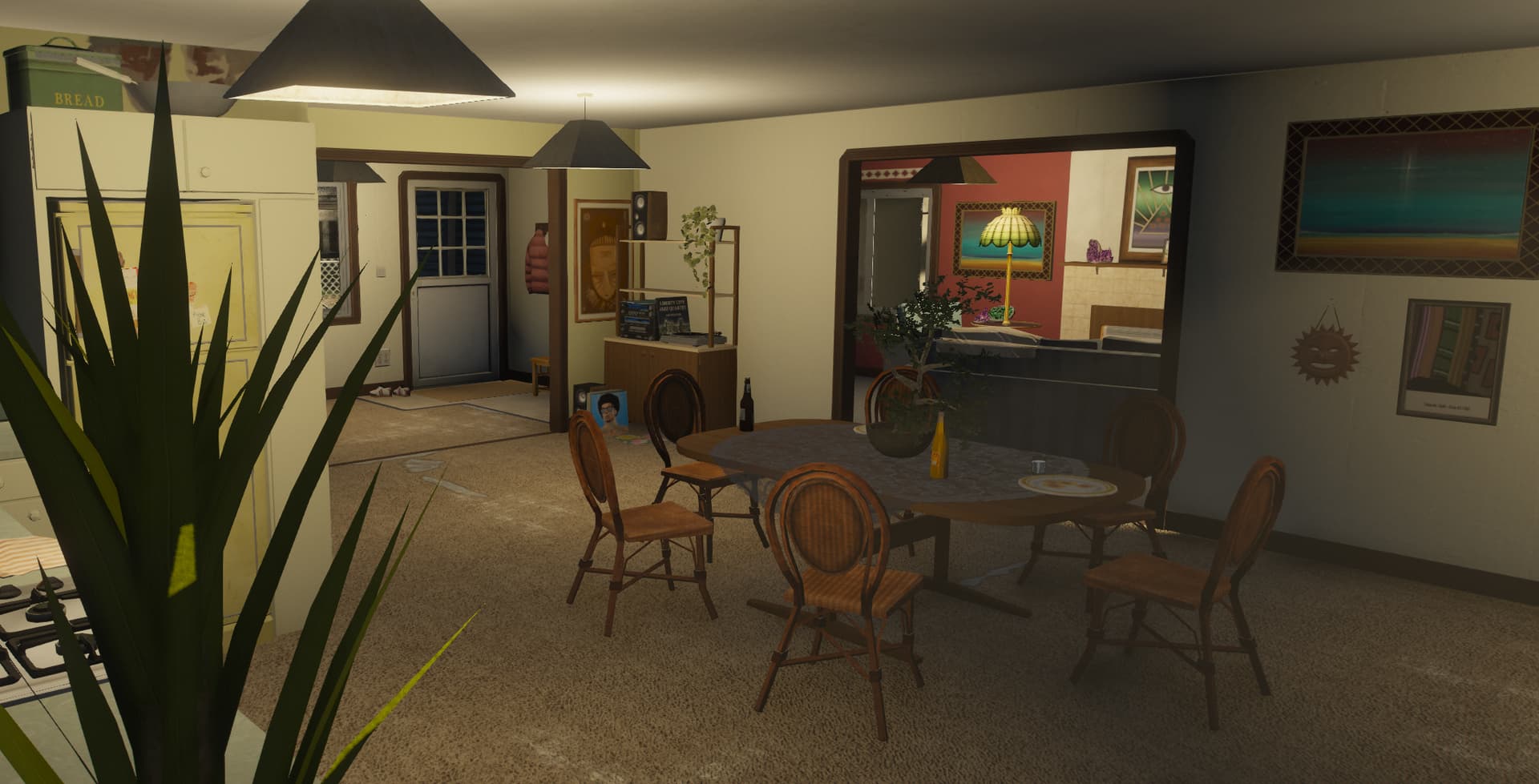 A gang-styled Vagos house set in the heart of the hood, featuring a detailed interior and functional garage.
