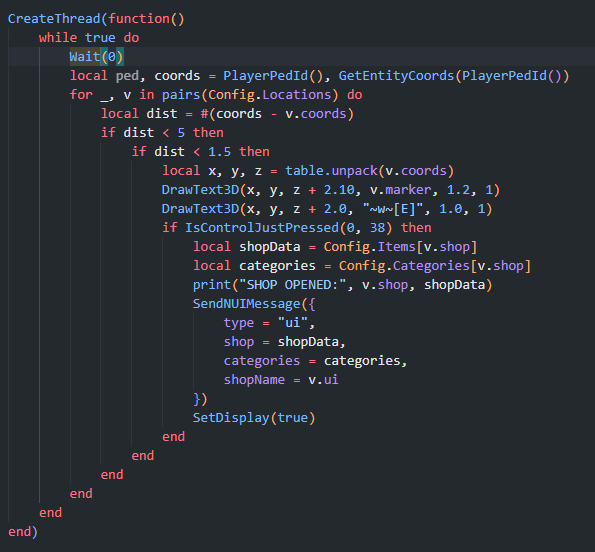 The problem with the code was that it used a loop with Wait(0), checking every frame if the player was within 1.5 meters of the NPC before displaying the text. This constant checking was unnecessarily expensive and caused terrible performance. The proposed fix spaces out the checks when the player is far away and makes them more frequent only when getting closer. That way, the code uses Wait(0) only when necessary, avoiding both the performance hit and any flickering text. Mate.