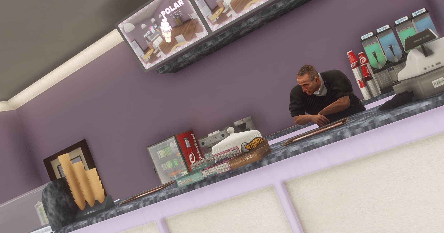 As it’s not a paid release, I wouldn’t expect you to customise any further but you could add the logo to the tables, add some more ice cream props, maybe colour the table or the chairs with the pink etc…