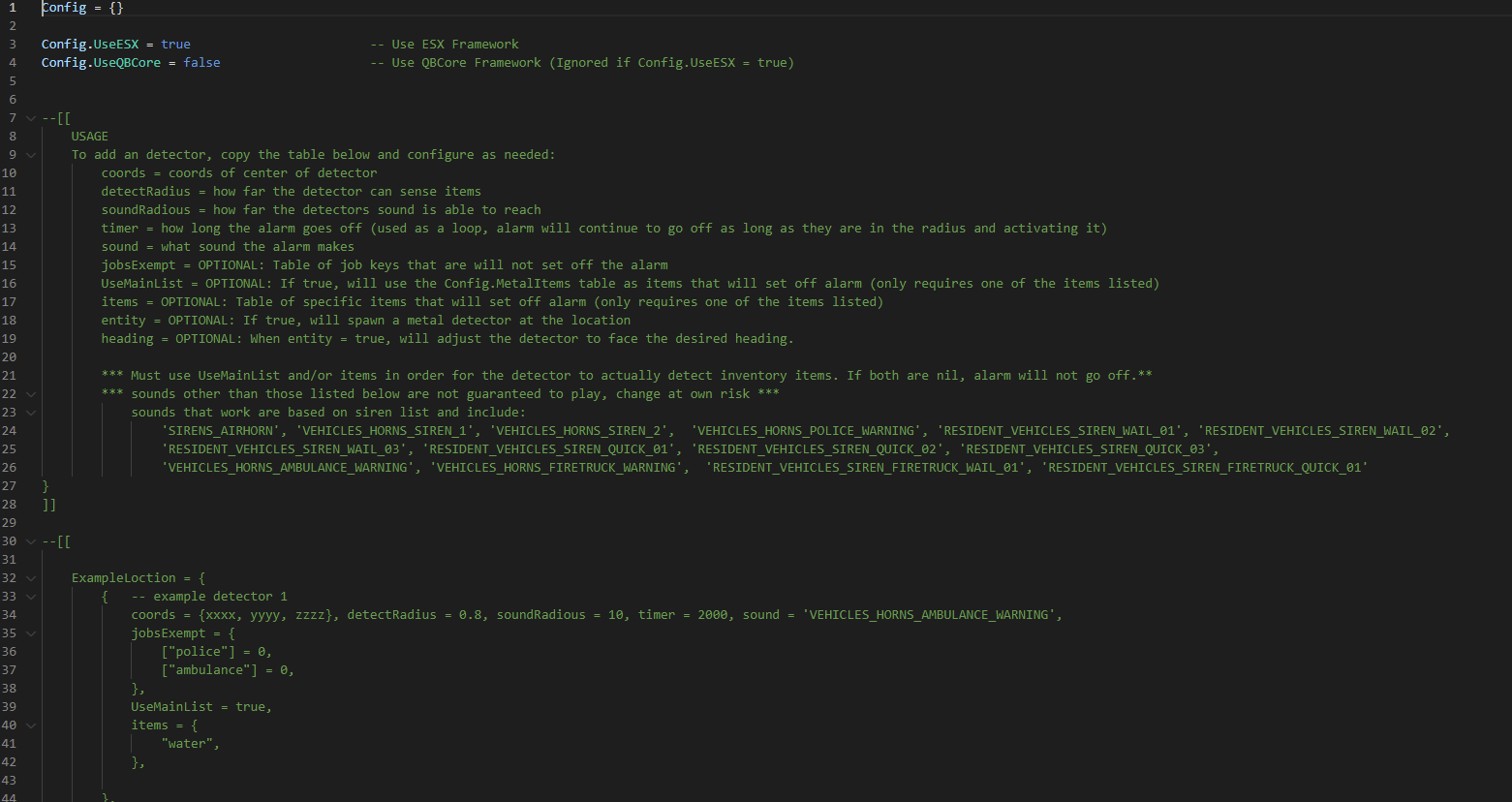 I have provided a few preset metal detectors to utilize as examples and have heavily commented on how to add additional detectors.