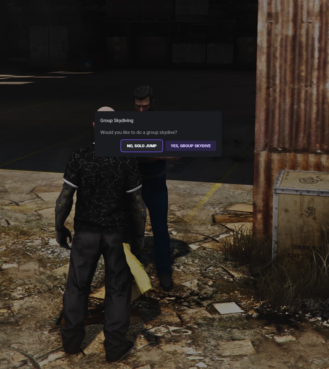 This was rewritten on 20/03/2024 after like 2 years of being archived. This is now just a solo sky diving resource which I’ve rewritten to use the synchronized scenes, cams and sounds from the GTA Online Junk Energy jumps.