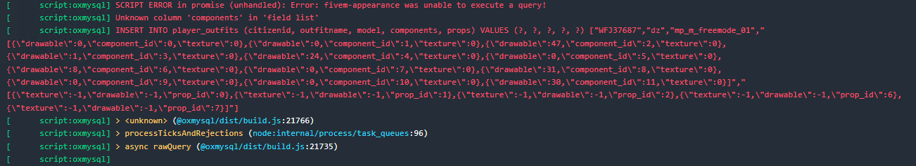 You haven’t created the new player_outfits table. Read the docs please!