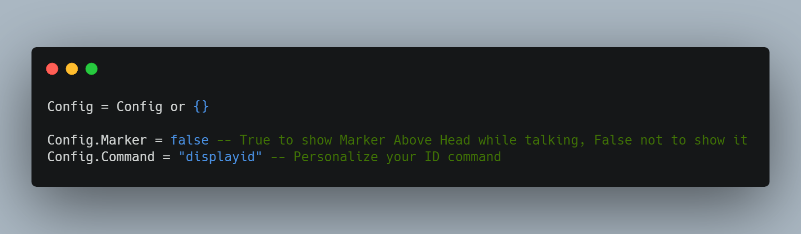 The script is plug and play and comes with a easy configuration file so you can modify the command used to show IDs. Also it includes the option to activate or deactivates marker while someone is talking.