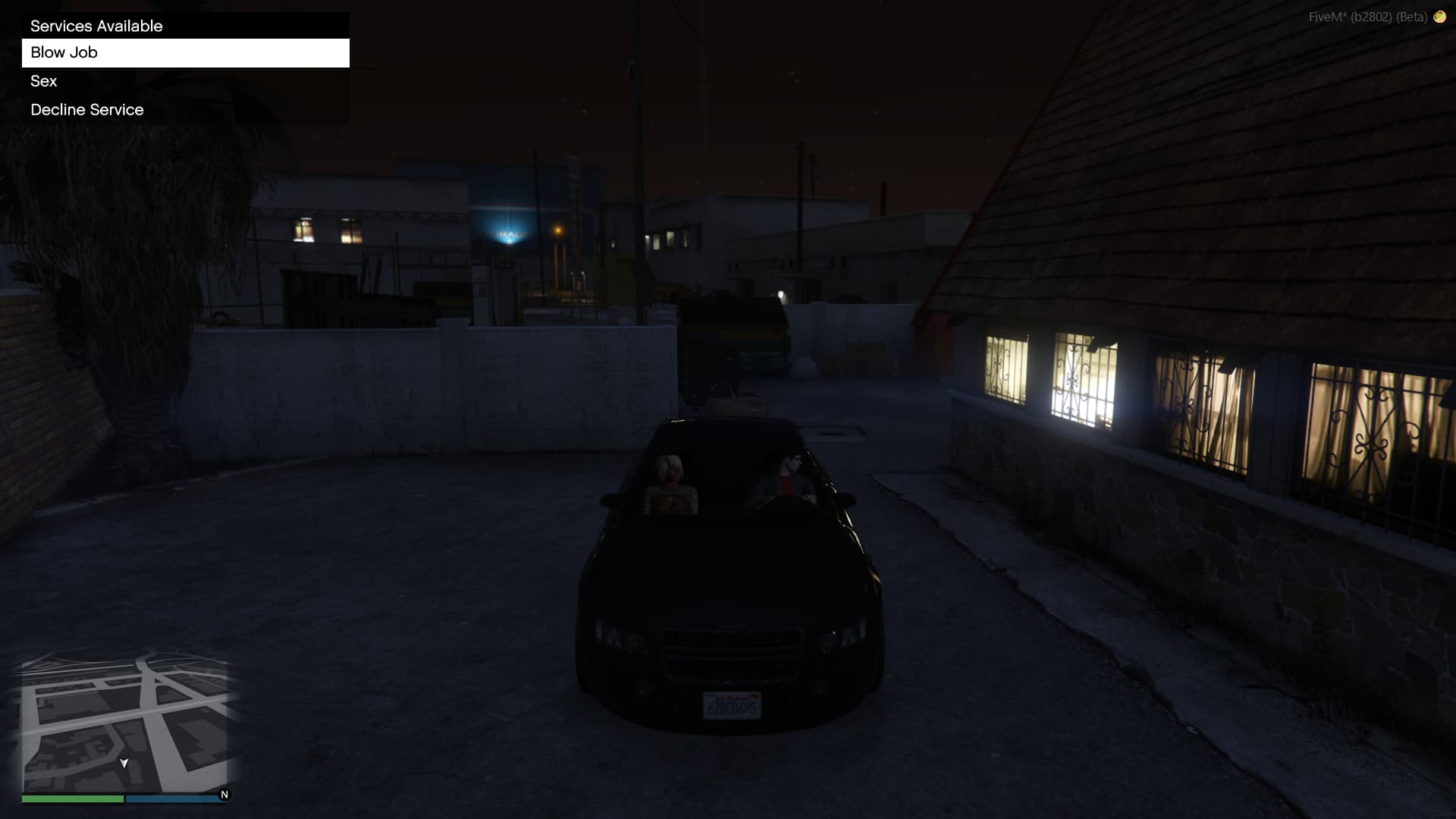 The script allows you to pick up any hookers that stand on the street at night, you then have to drive to a “secluded” place before you can receive any services.