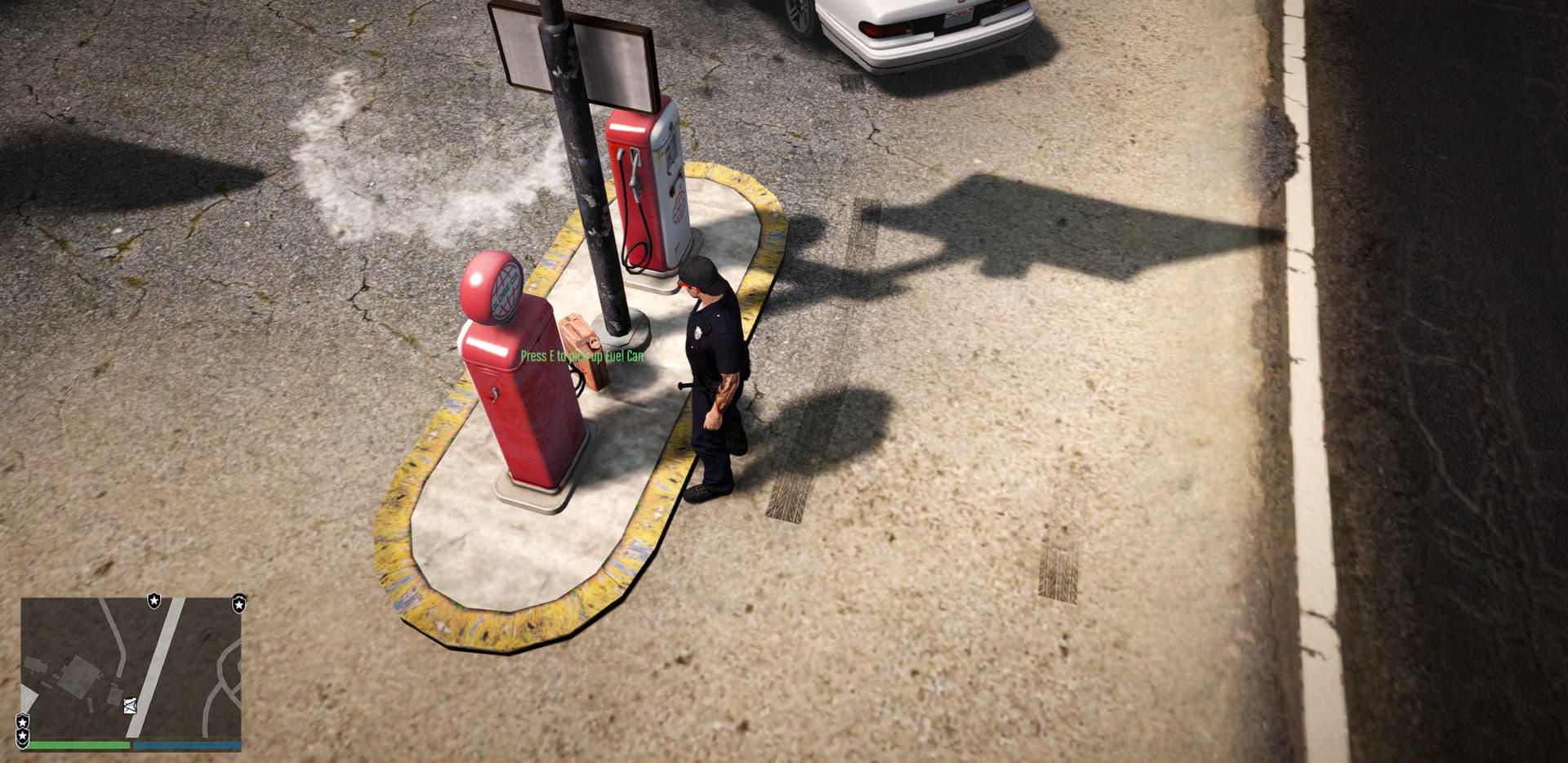 -You can pickup a jerry can and fill up your vehicle anywhere. Each fill up takes 5 seconds and fills 50% of a gas tank (configurable)