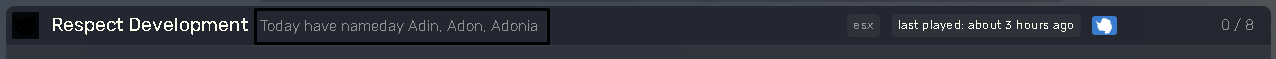 With this script you can easily set NameDay in your server description, make sure you server have automatic restart in 00:00 for right script usage (Refreshing names in server description.). You can also use normal server description, but you must write it in shared/Config.lua, because script replace classic server description!