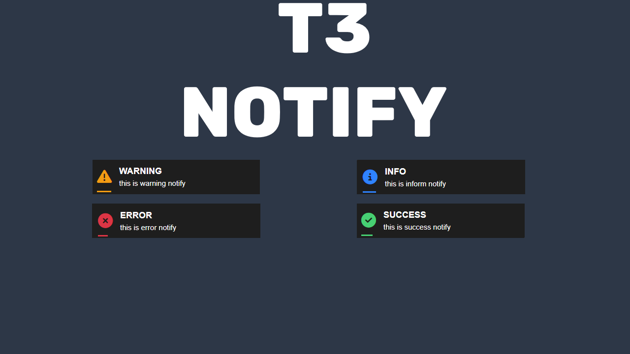 Notification Types: inform, error, success, warning