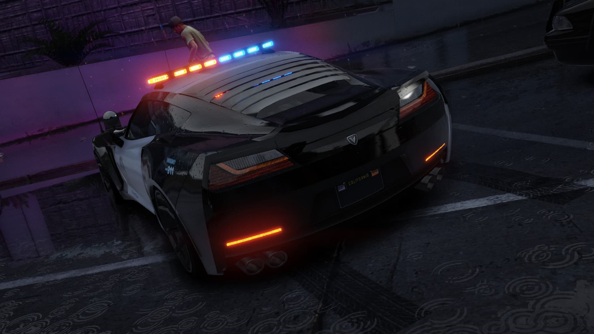 Designed for professional FiveM servers, a high-performance and visually striking patrol vehicle. This model masterfully blends the aggressive sporty lines of the Invento Coquette D7 with the iconic design of a generic C7, built to establish a dominant presence in both urban patrols and highway pursuits.