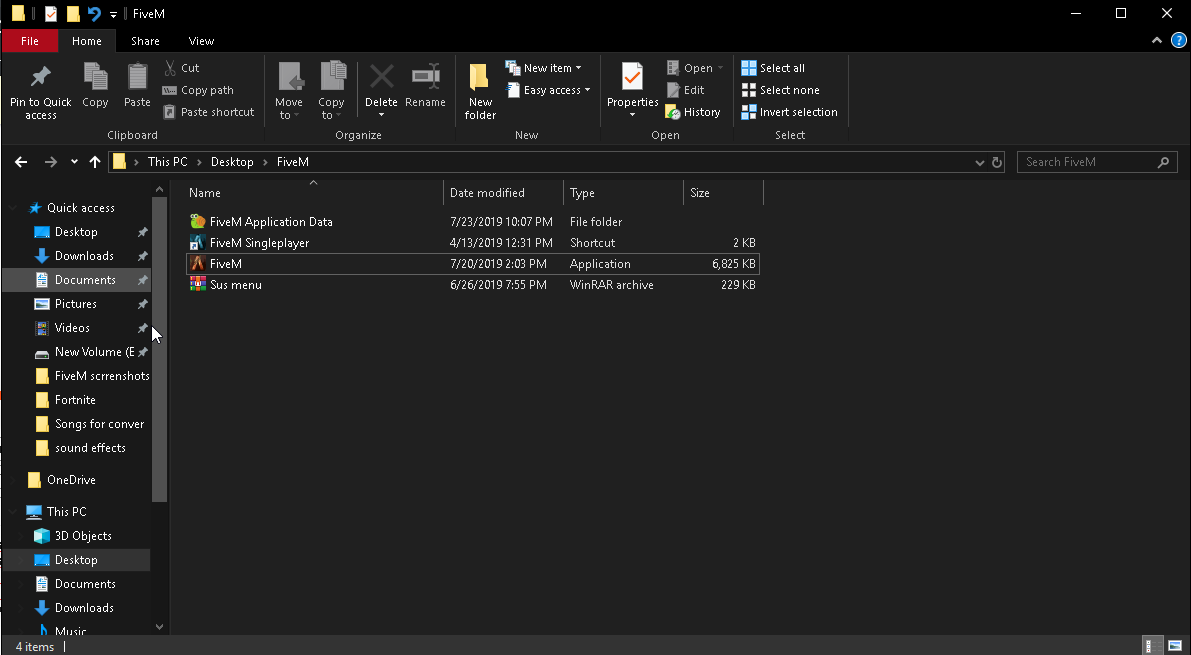 Filepath to FiveM folder Desktop > FiveM