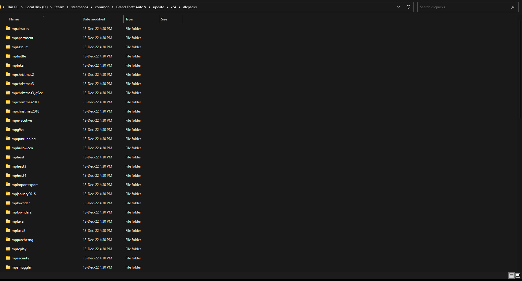 GTA V/update/x64/dlcpacks screenshot: