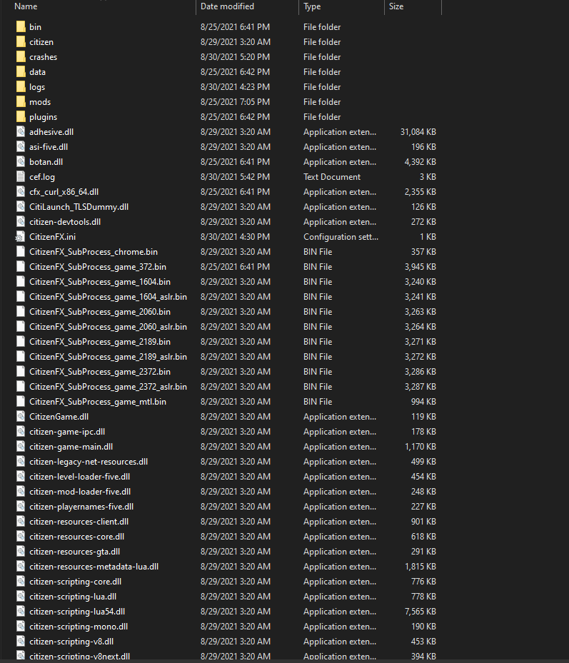 GTA V folder screenshot: GTA V/update/x64/dlcpacks screenshot: Filepath to FiveM folder: FiveM client folder screenshot: Which antivirus/firewall software are you using? Did you try to disable/uninstall your Anti-virus?
