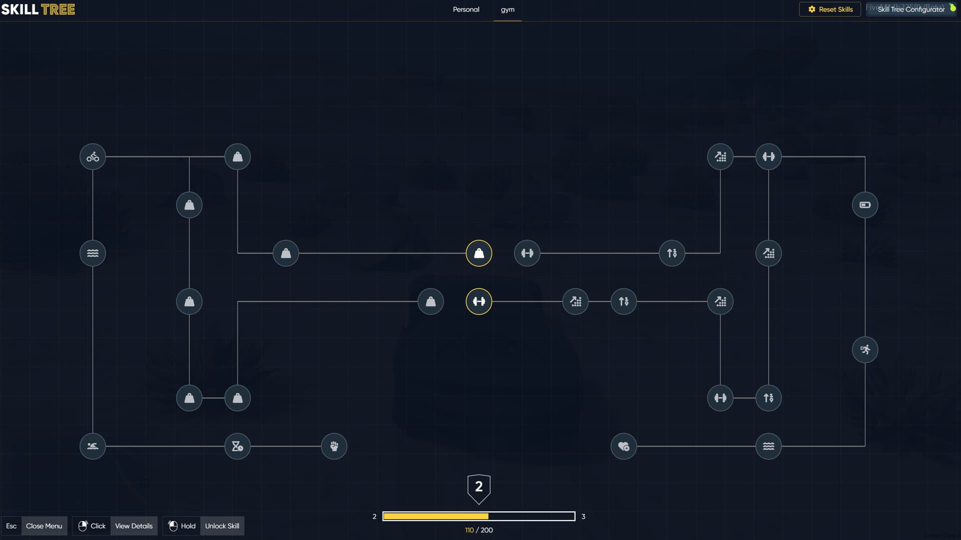 Expanded Gym Skill Tree with 9 new skills to enhance player stats:
