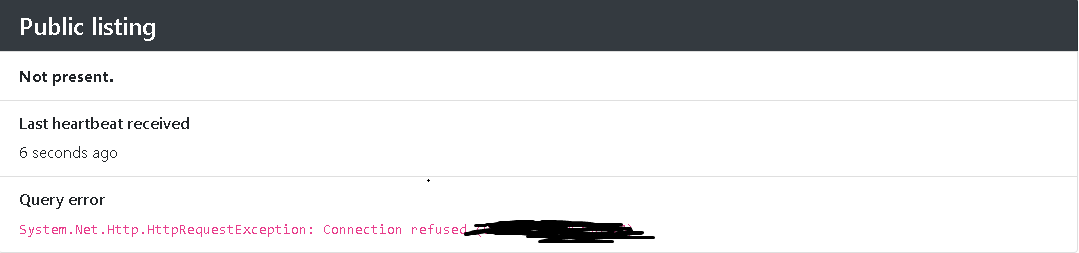 “connection refused” = your ports are not forwarded or you have software blocking connection, simple.