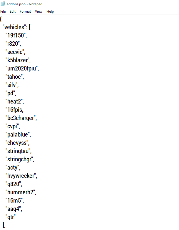 Hey There, I’ve recently added in multiple add vehicles, they spawn properly and all that jazz but they won’t show up in the vMenu Addon Vehicle Section no matter what I do! I’d appreciate any help possible! ![]()