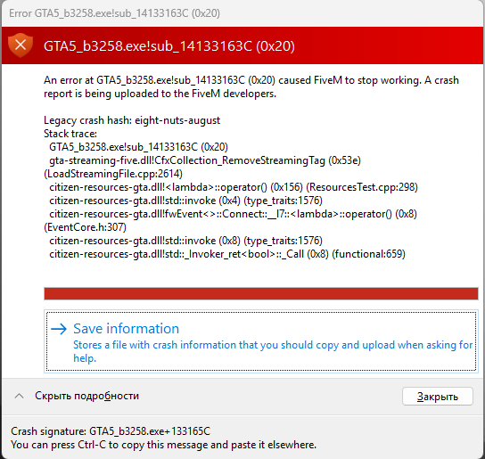 I tried reinstalling FiveM, GTA V, but it didn’t help. I tried different builds, for example, 3095, 3258 and 3407, but nothing helped.