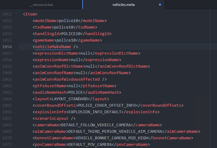 I changed them back to “POLICE”, still broken, I must have messed something up in vehicles.meta