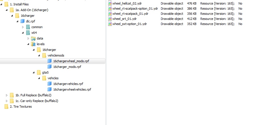 and even also has: 16charger_mods.rpf whith lots of files in the dlc.rpf