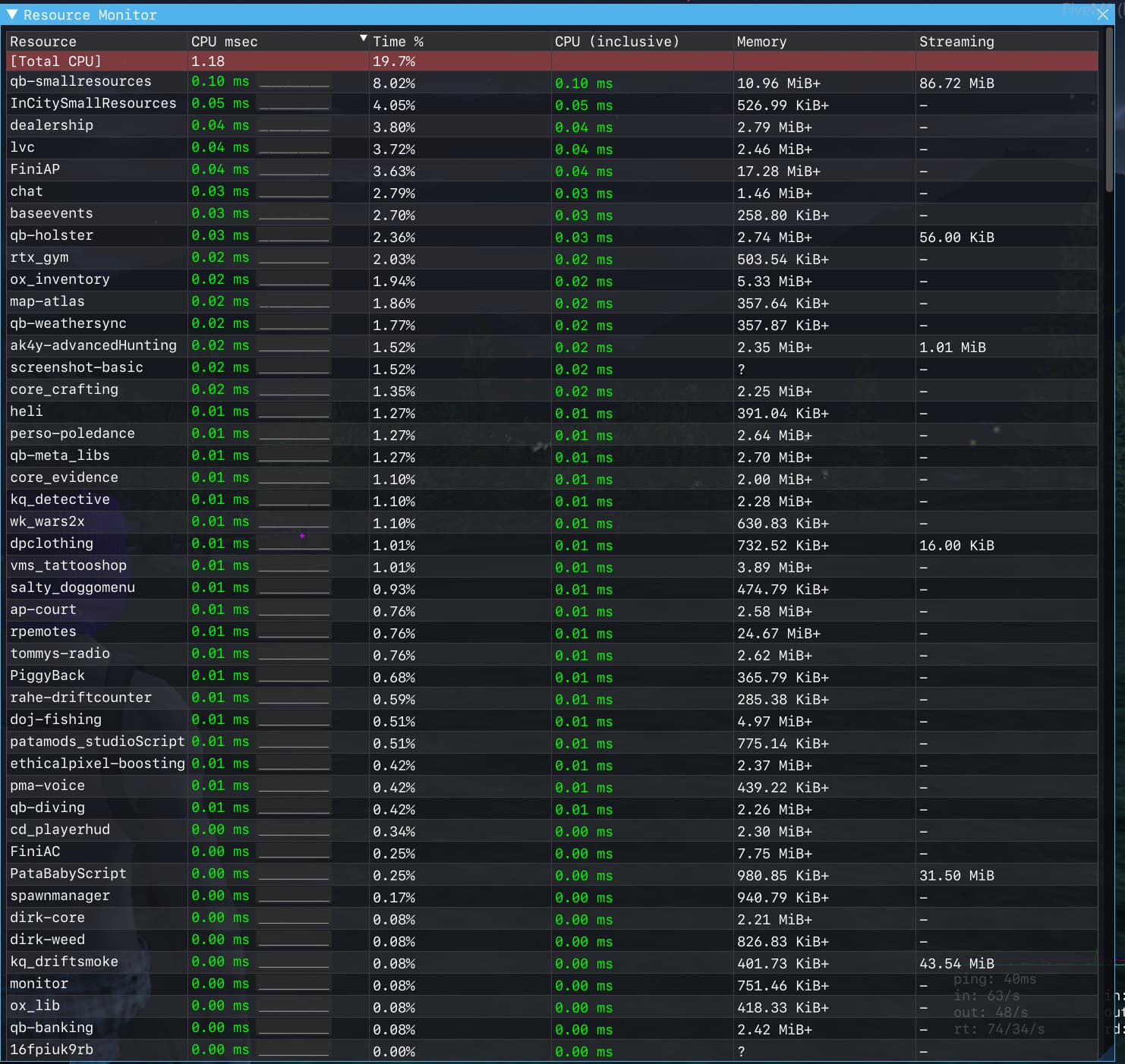 Packet loss is at 4% with only one player in the server. This is the same as it was with the poorly optimised scripts so suggests this hasn’t fixed the issue i guess?