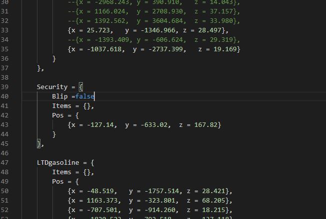 you need a , after false and again will need to set your if statements correctly where the blips are being drawn in the client file.