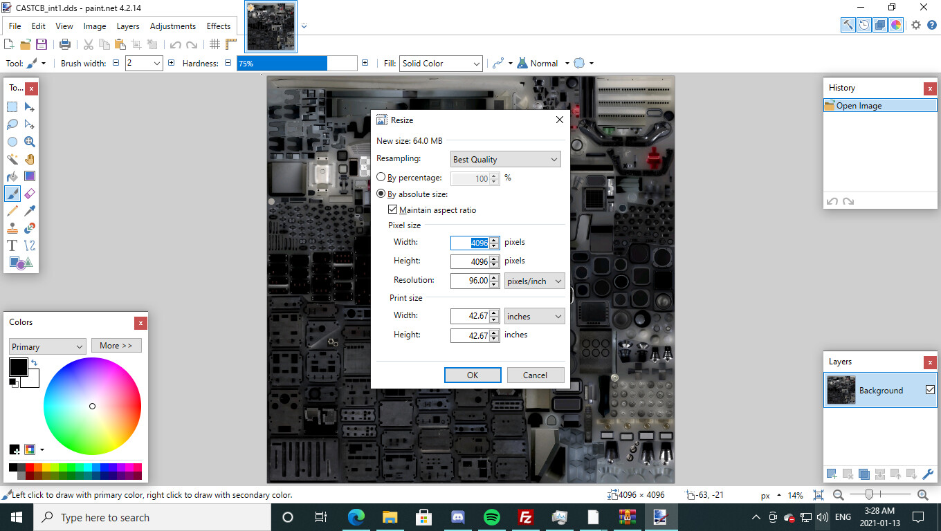 This is where it gets tricky… see the numbers on the screen? We need to bring those down in order to get the file to the right size! Click on the width and Just change that number the rest should change automatically (Mine say’s 4096. So we will be dropping the size by half and going to 2046. If Your’s Say 2046 Then Put it to 1024 Then Press Okay when done )