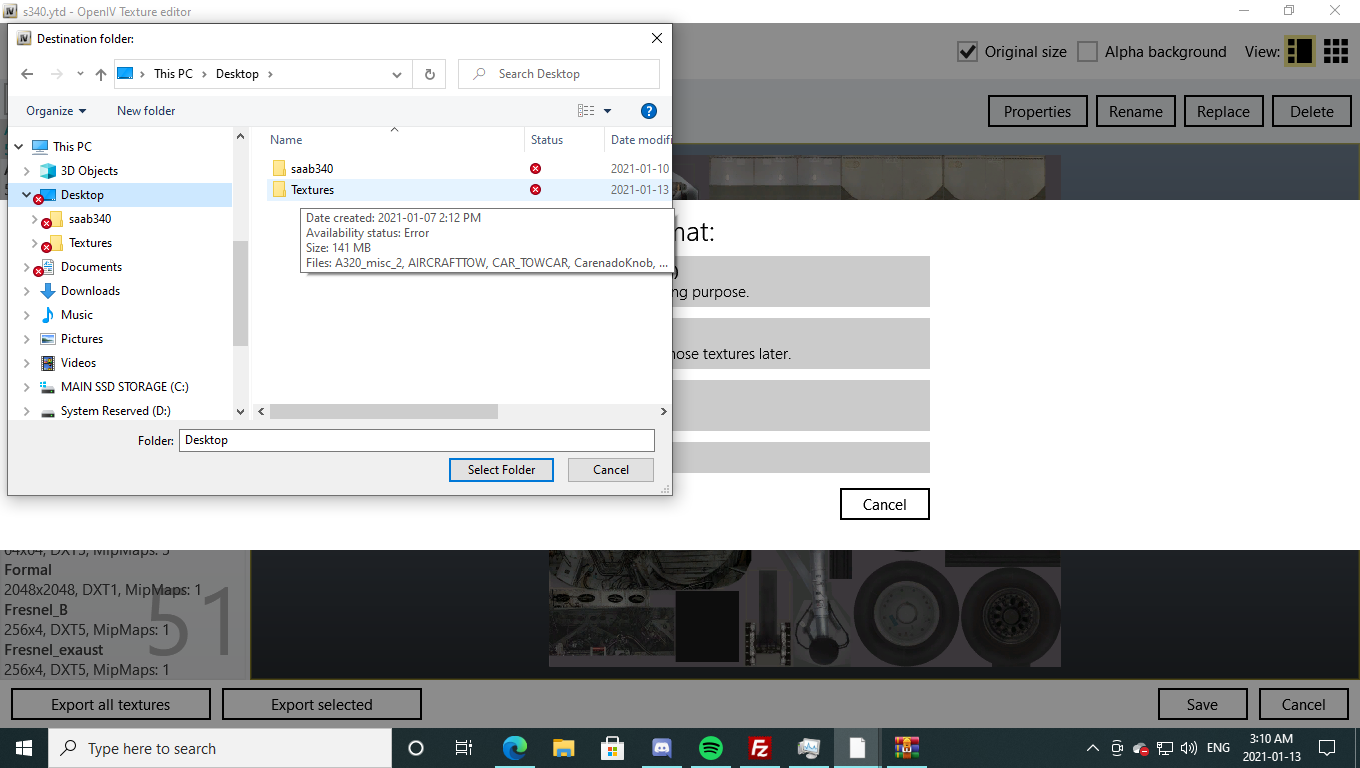 - Once you have downloaded those you’re going to Need to make a Folder on your Desktop and Just to make it Easy, Simply Call it ‘Textures’ And Another one for your Vehicle Ours will be called ‘SAAB340’