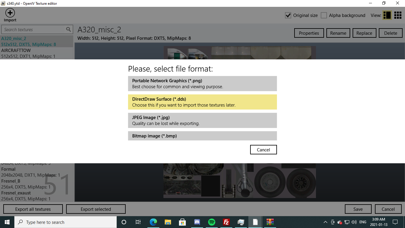 So, Click on the file open it up and Select ‘Export all Textures’ And Select ‘DirectDraw Surface’ and Put them into the ‘Texture’ Folder We just Made Earlier and then Open It up!