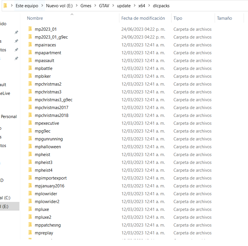 GTA V/update/x64/dlcpacks screenshot:
