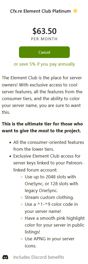 Hello there! We’re going to have an influx of players and we need to upgrade our slots from 64 to 128. What Element club level should we get?