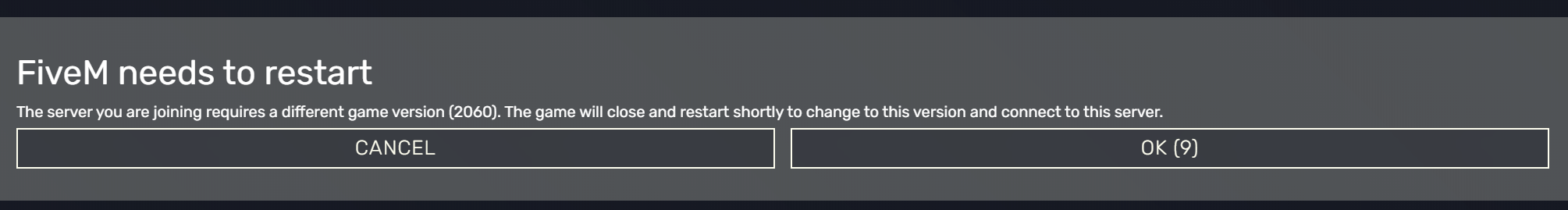 “This server requires you to run the lastest build, we will automatically switch the version for you. This might take a minute and FiveM will close and relaunch and automatically connect you to the server. Please be patient”