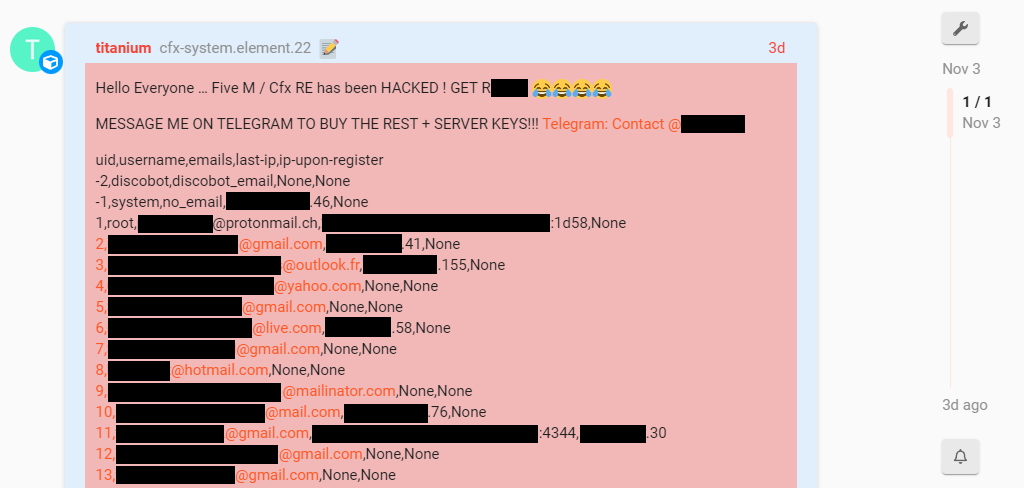 On November 3rd, one of those element accounts suddenly popped up. The attacker used a compromised element account to create a post in which they revealed to have access to account data.