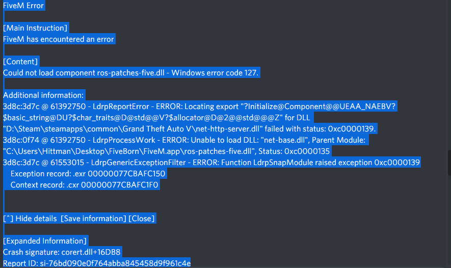 GTA V/update/x64/dlcpacks screenshot Filepath to FiveM folder I first had it go to the d drive then after uninstalling and reinstalling I just put it to my desktop: C:\Users\Hittman\Desktop\FiveBorn FiveM client folder screenshot